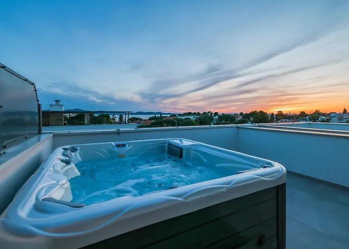 Premium Residence Ventus Rosa - Bora Penthouse Zara, di 180 m², situato a circa 20 minuti a piedi dal Porto di Zara, si trova a 2 km da un luogo ideale per famiglie come la Piazza dei Signori. Con una terrazza a disposizione, gli ospiti di quest'appartamento possono godere di una vista sulla spiaggia sul mare.